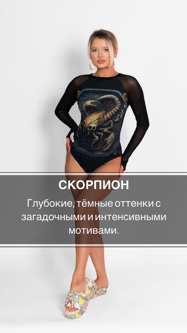 Слитный купальник SPF с длинными рукавами — рашгард из сетки — СКОРПИОН